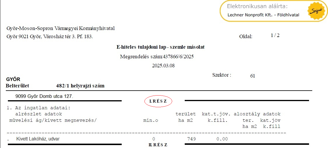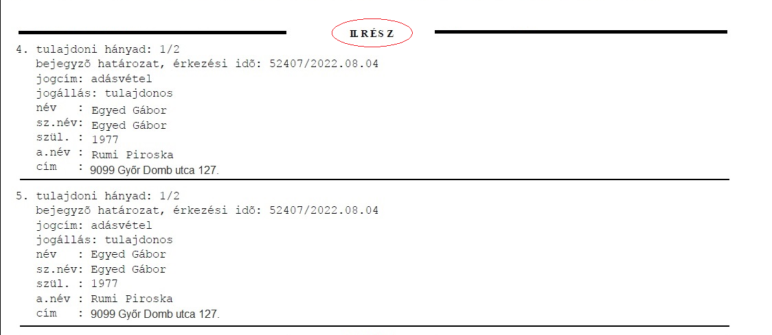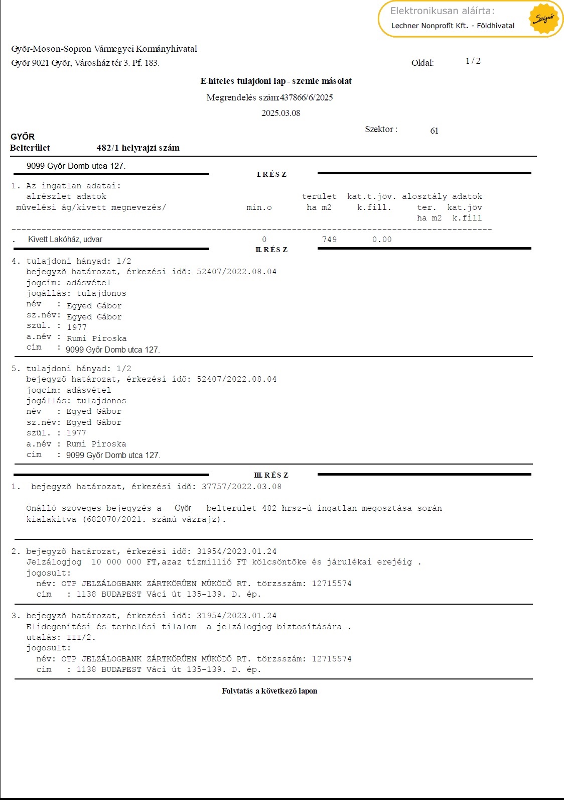 E-hiteles tulajdoni lapot tudsz majd lekérni. Lehetséges „TELJES” és „SZEMLE” változatot is lekérni. A „TELJES” típusú minden eddigi tulajdonost, terhet és adatot tartalmaz. A „SZEMLE” csak az aktuális adatokat! A legtöbb esetben elég a „SZEMLE„! Ráadásul könnyebb is kiigazodni rajta! Én ezt javaslom lekérni.